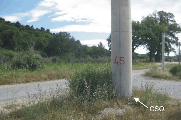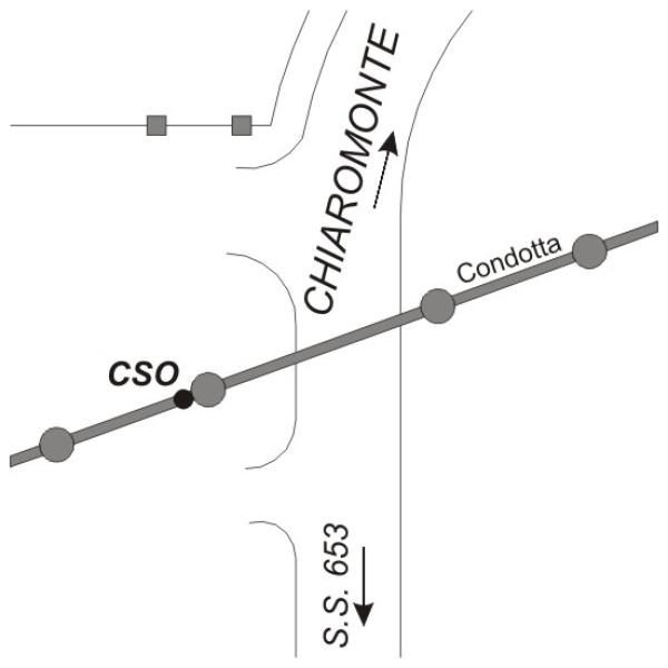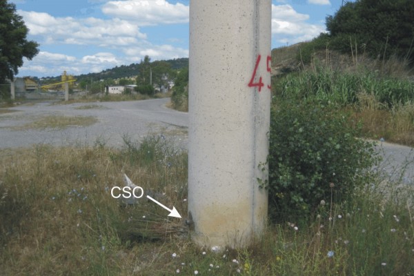 [{"simbolo_contrassegno":"B1","materializzazione":"(CSO) – Bullone infisso nella pila di una condotta nel lato opposto alla strada, lato valle"}]