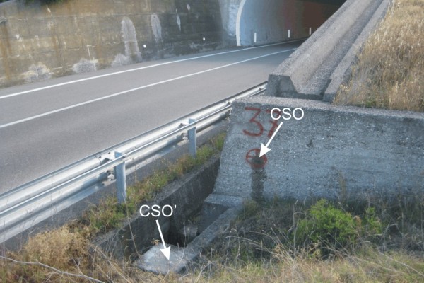 | Contrassegni | [{"simbolo_contrassegno":"B1","materializzazione":"(CSO) – Bullone infisso nella cunetta alla fine del muro d'ala destro"},{"simbolo_contrassegno":"B4","materializzazione":"(CSO') – Centrino universale infisso sul bordo del tombino a 5 metri dal CSO"}] |