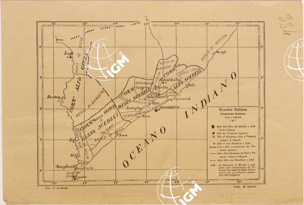 La carta riporta i limiti giurisdizionali e le sedi dei vari Uffici e Tribunali.