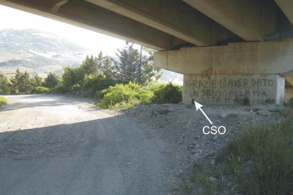 [{"simbolo_contrassegno":"B1","materializzazione":"(CSO) – Bullone infisso nel pilone della superstrada SS 653, lato valle"}]