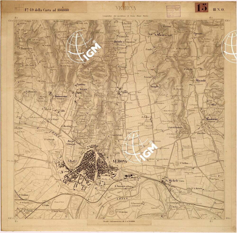 Originali alla scala di 1:15.000 disegnati per la successiva stampa alla scala di 1:25.000 da Soldati Allievi della Scuola Superiore di Guerra dai rilievi alla scala di 1:10.000 eseguiti negli anni dal 1867 al 1869