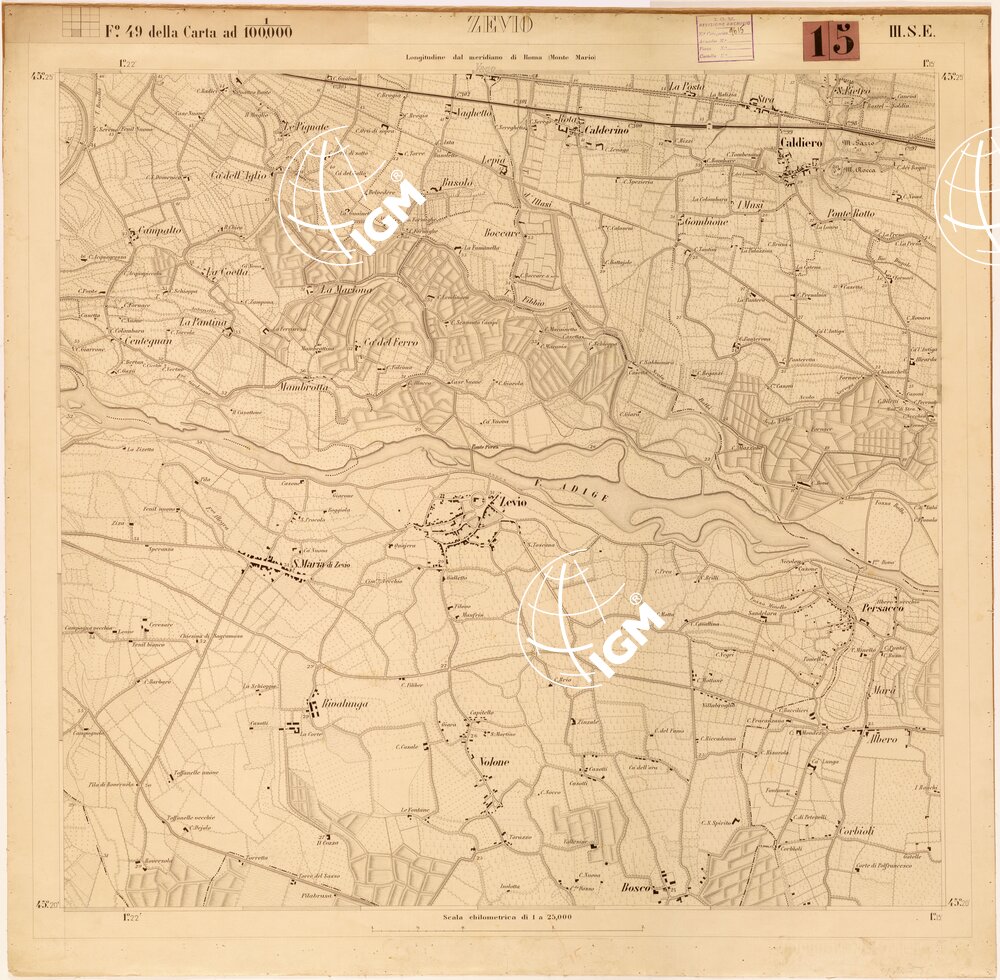Originali alla scala di 1:15.000 disegnati per la successiva stampa alla scala di 1:25.000 da Soldati Allievi della Scuola Superiore di Guerra dai rilievi alla scala di 1:10.000 eseguiti negli anni dal 1867 al 1869