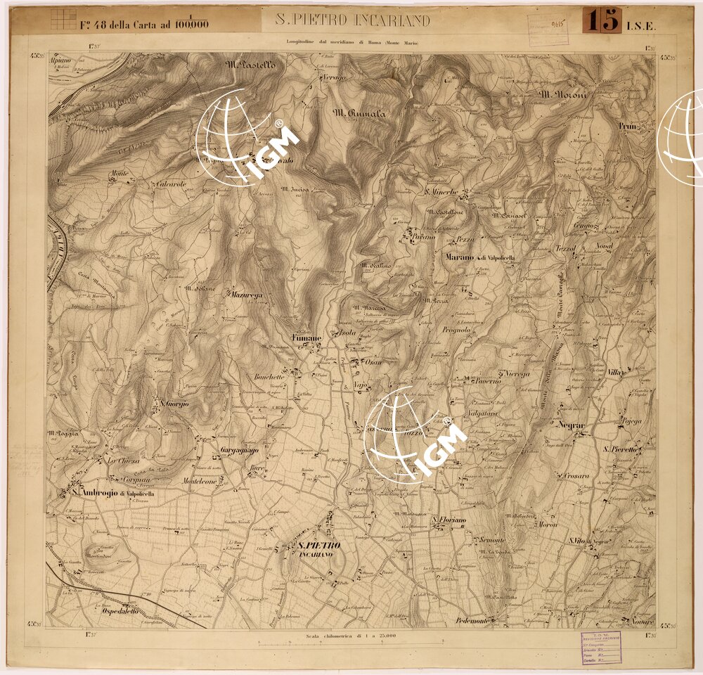 Originali alla scala di 1:15.000 disegnati per la successiva stampa alla scala di 1:25.000 da Soldati Allievi della Scuola Superiore di Guerra dai rilievi alla scala di 1:10.000 eseguiti negli anni dal 1867 al 1869