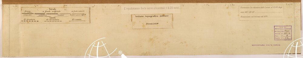 Originali alla scala di 1:15.000 disegnati per la successiva stampa alla scala di 1:25.000 da Soldati Allievi della Scuola Superiore di Guerra dai rilievi alla scala di 1:10.000 eseguiti negli anni dal 1867 al 1869