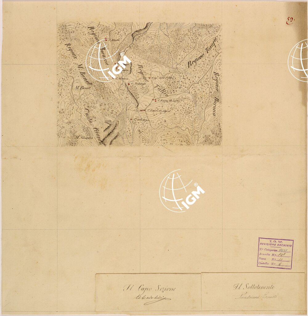 Rilievi eseguiti da Ufficiali della Scuola Superiore di Guerra, disegnati a colori su carta da disegno montata su tela.