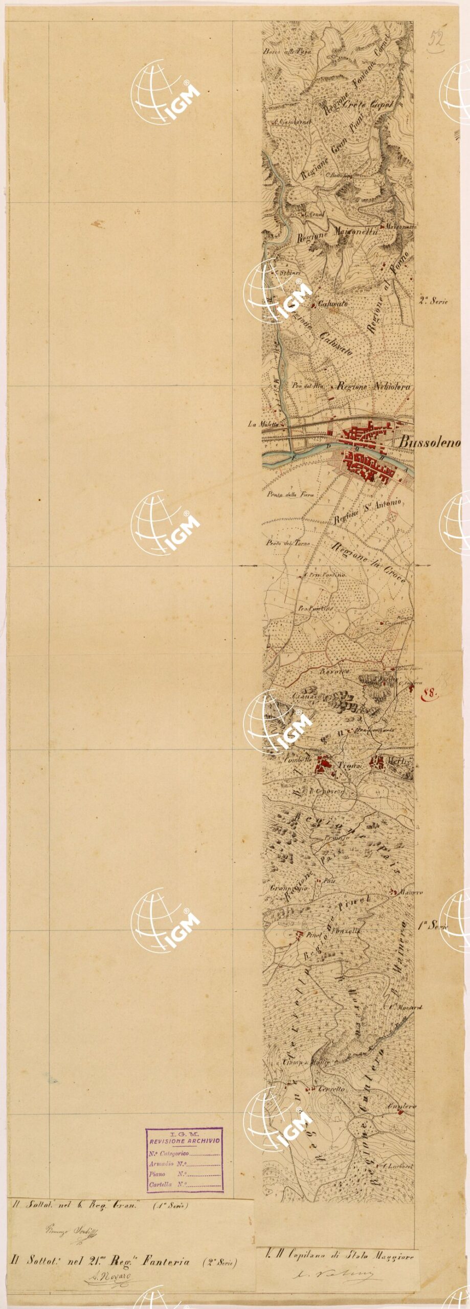 Rilievi eseguiti da Ufficiali della Scuola Superiore di Guerra, disegnati a colori su carta da disegno montata su tela.