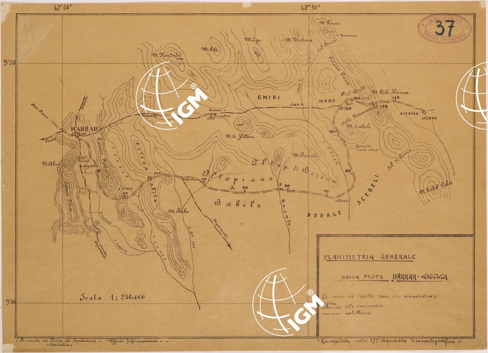 Copia eliografica della 27° Squadra Topocartografica del Comando del Corpo di Spedizione in Somalia.
