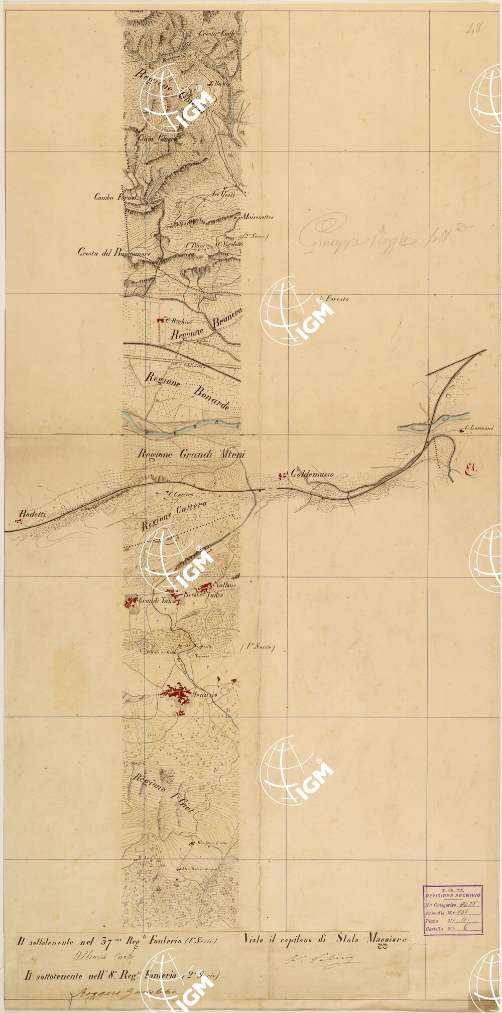 Rilievi eseguiti da Ufficiali della Scuola Superiore di Guerra, disegnati a colori su carta da disegno montata su tela.