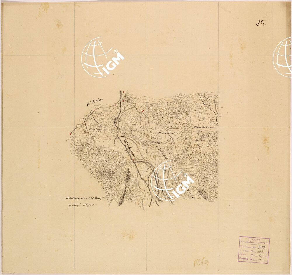 Rilievi eseguiti da Ufficiali della Scuola Superiore di Guerra, disegnati a colori su carta da disegno montata su tela.