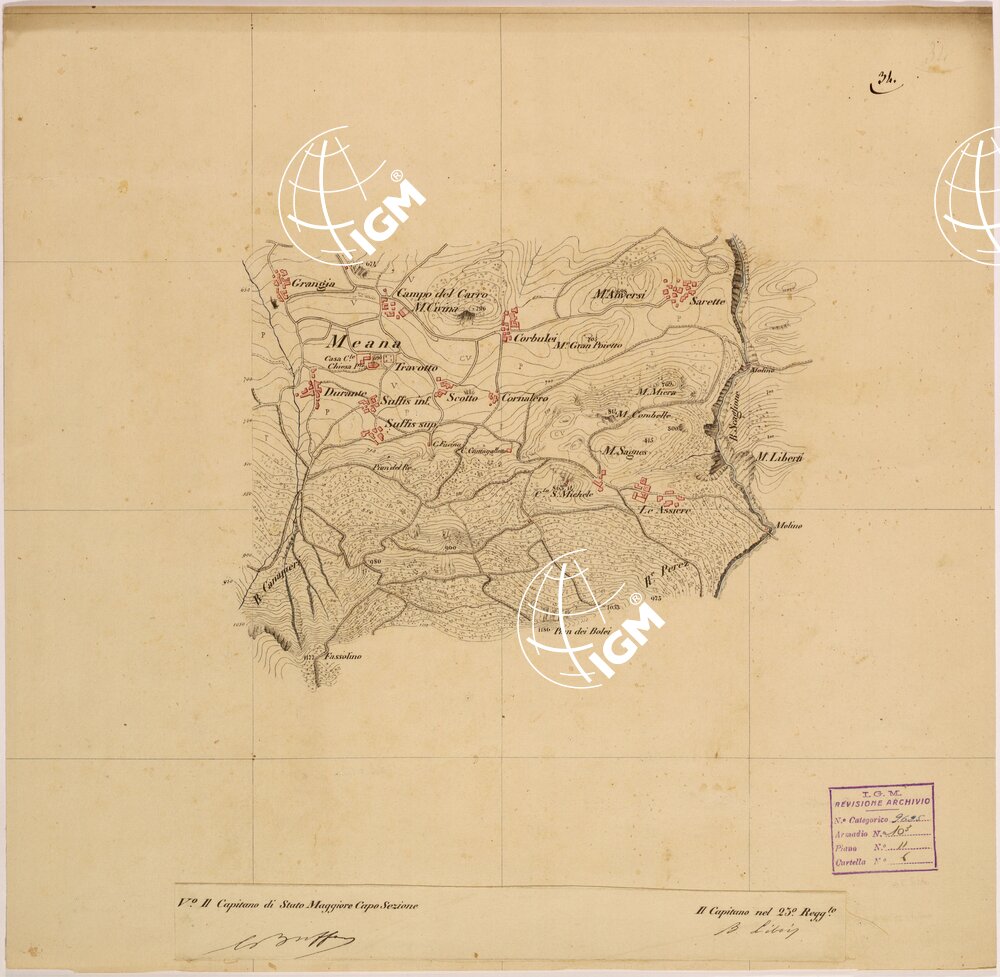 Rilievi eseguiti da Ufficiali della Scuola Superiore di Guerra, disegnati a colori su carta da disegno montata su tela.