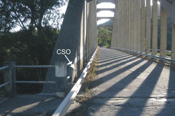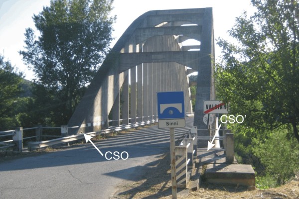 | Contrassegni | [{"simbolo_contrassegno":"B1","materializzazione":"(CSO) – Bullone infisso nell'arco della travata del ponte, sponda destra, lato monte"},{"simbolo_contrassegno":"B4","materializzazione":"(CSO') – Centrino universale infisso sulla soletta della spalla del ponte, sponda destra, lato valle"}] |