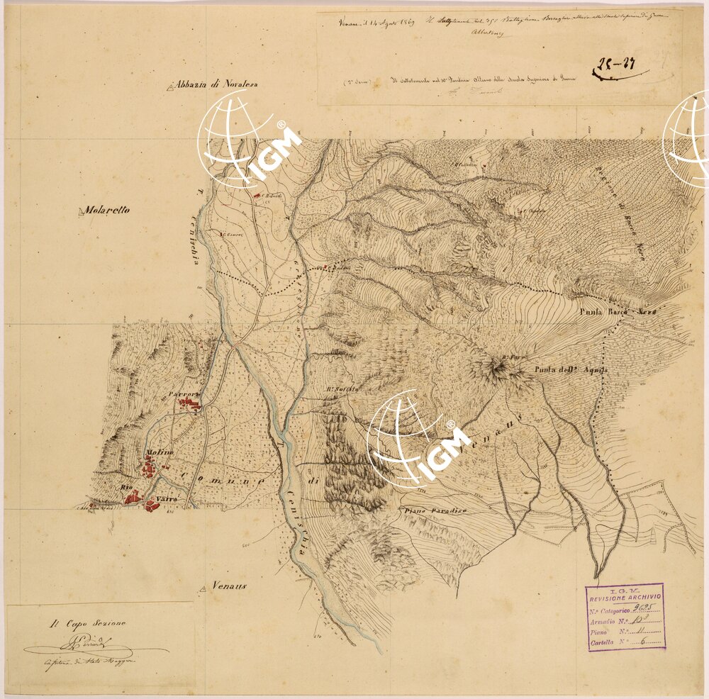 Rilievi eseguiti da Ufficiali della Scuola Superiore di Guerra, disegnati a colori su carta da disegno montata su tela.