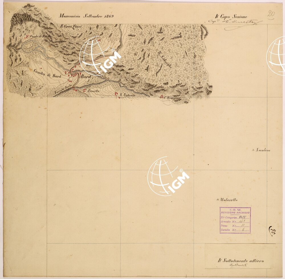 Rilievi eseguiti da Ufficiali della Scuola Superiore di Guerra, disegnati a colori su carta da disegno montata su tela.