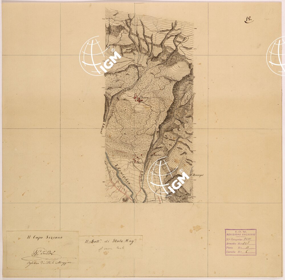 Rilievi eseguiti da Ufficiali della Scuola Superiore di Guerra, disegnati a colori su carta da disegno montata su tela.
