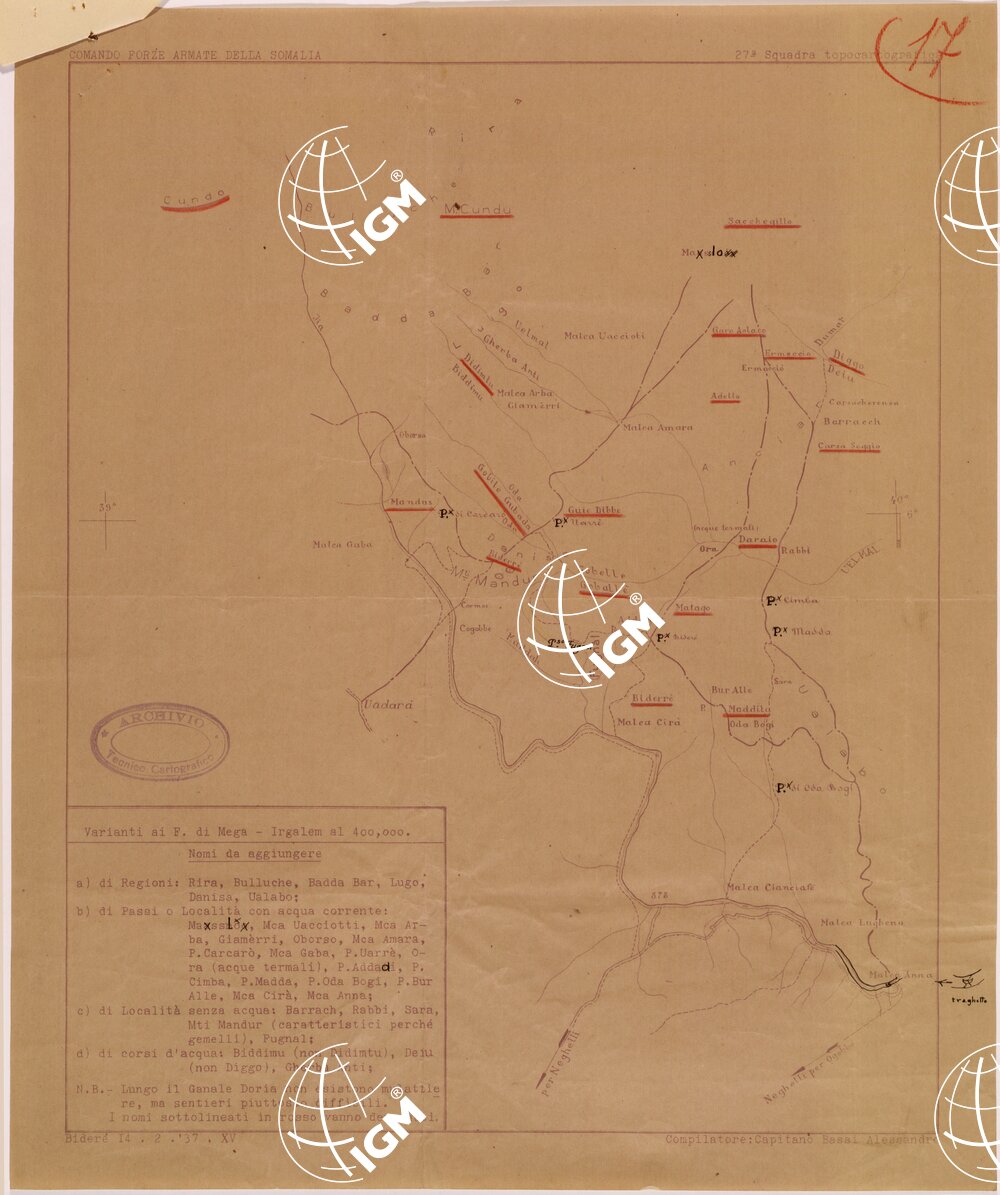 Copia eliografica della 27° Squadra Topocartografica del Comando Forze Armate della Somalia.