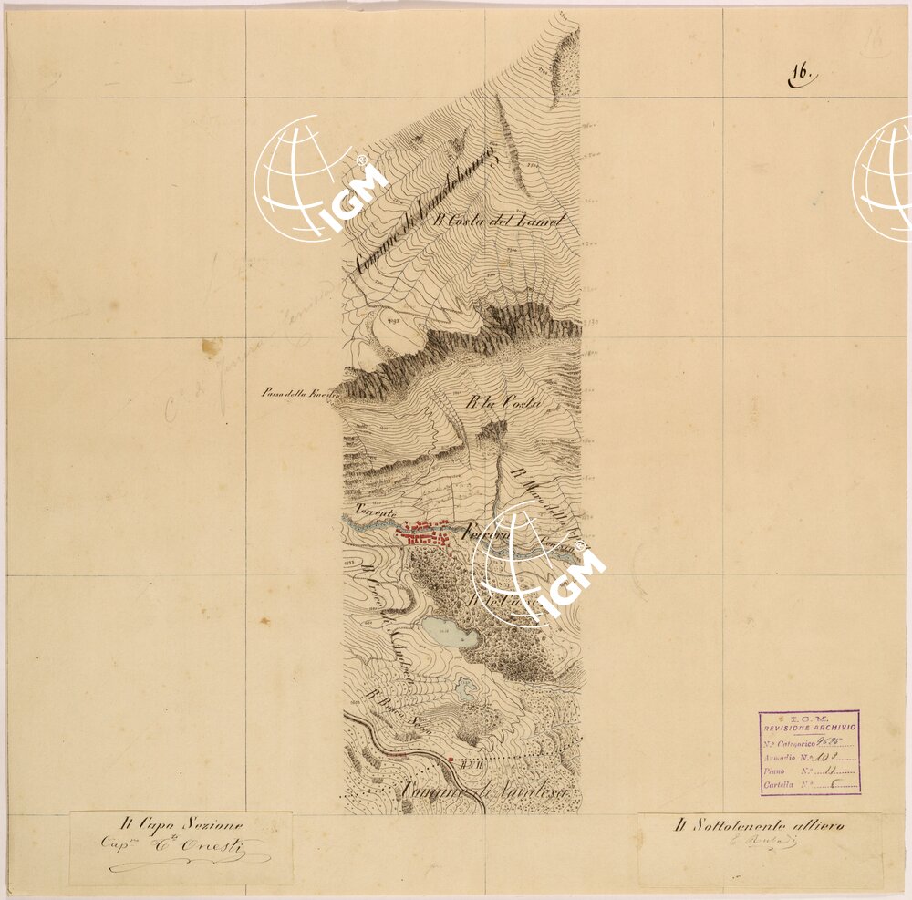 Rilievi eseguiti da Ufficiali della Scuola Superiore di Guerra, disegnati a colori su carta da disegno montata su tela.