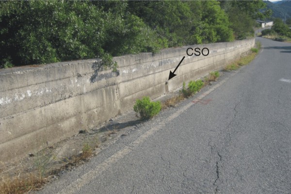 | Contrassegni | [{"simbolo_contrassegno":"B1","materializzazione":"(CSO) – Bullone infisso nel muro di contenimento, lato monte, a 20 metri dalla testata"}] |