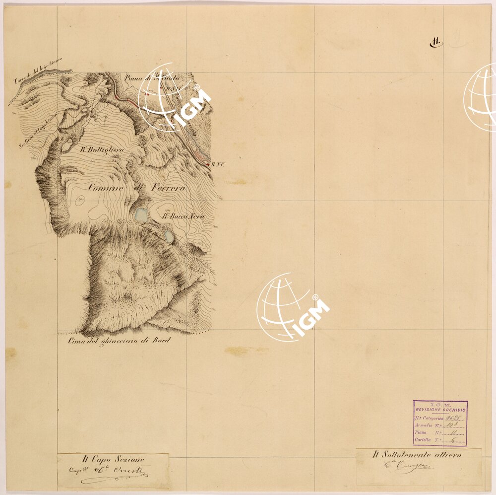 Rilievi eseguiti da Ufficiali della Scuola Superiore di Guerra, disegnati a colori su carta da disegno montata su tela.