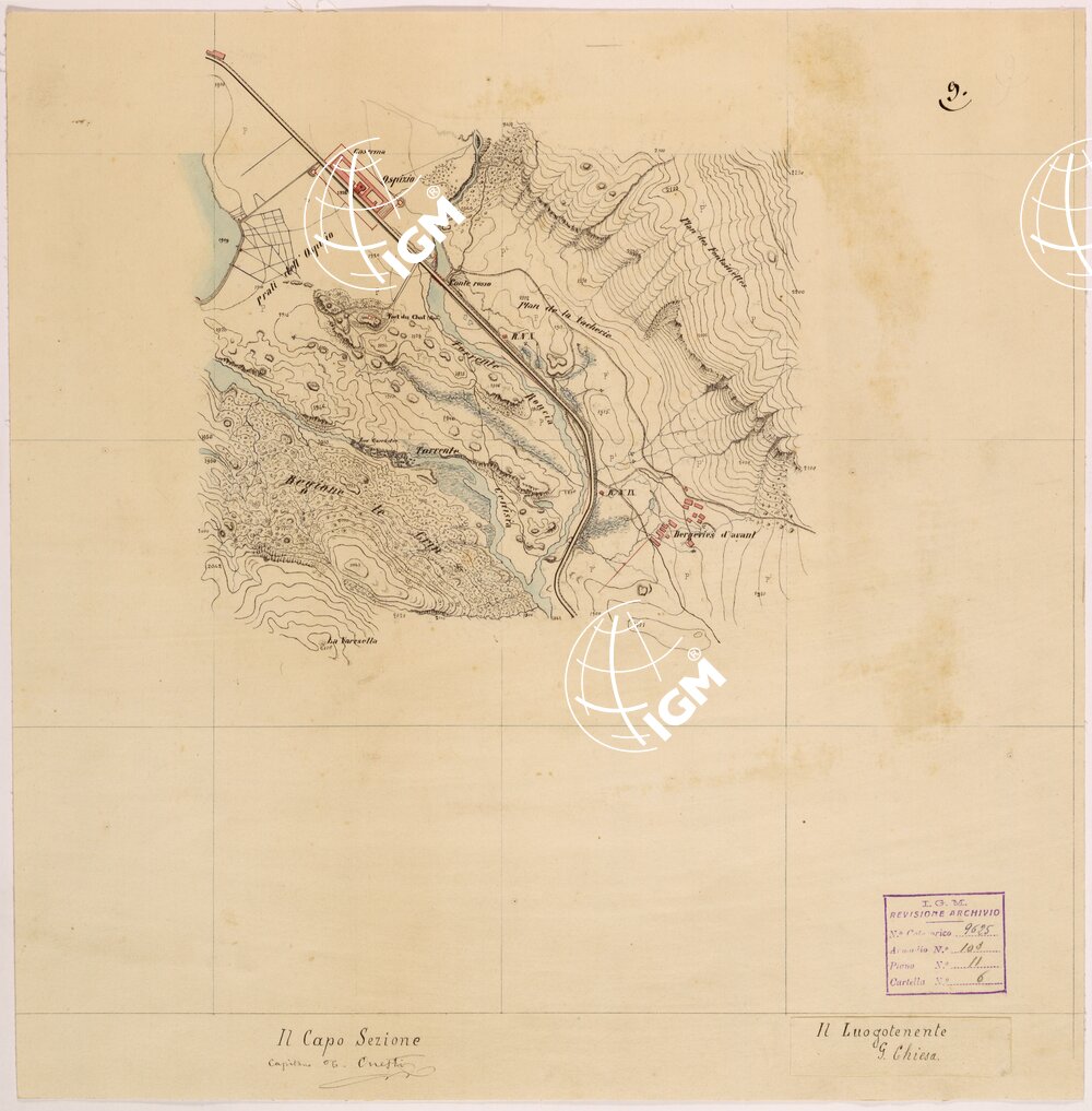 Rilievi eseguiti da Ufficiali della Scuola Superiore di Guerra, disegnati a colori su carta da disegno montata su tela.