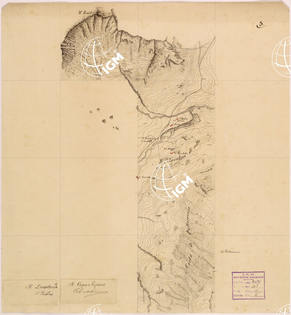 Rilievi eseguiti da Ufficiali della Scuola Superiore di Guerra, disegnati a colori su carta da disegno montata su tela.