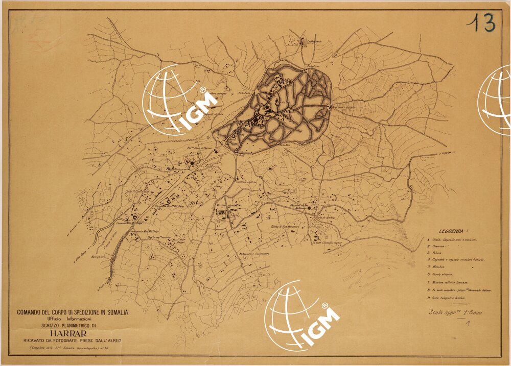 Copia eliografica ricavata da fotografie aeree dalla 27° Squadra Topocartografica del Comando del Corpo di Spedizione in Somalia.