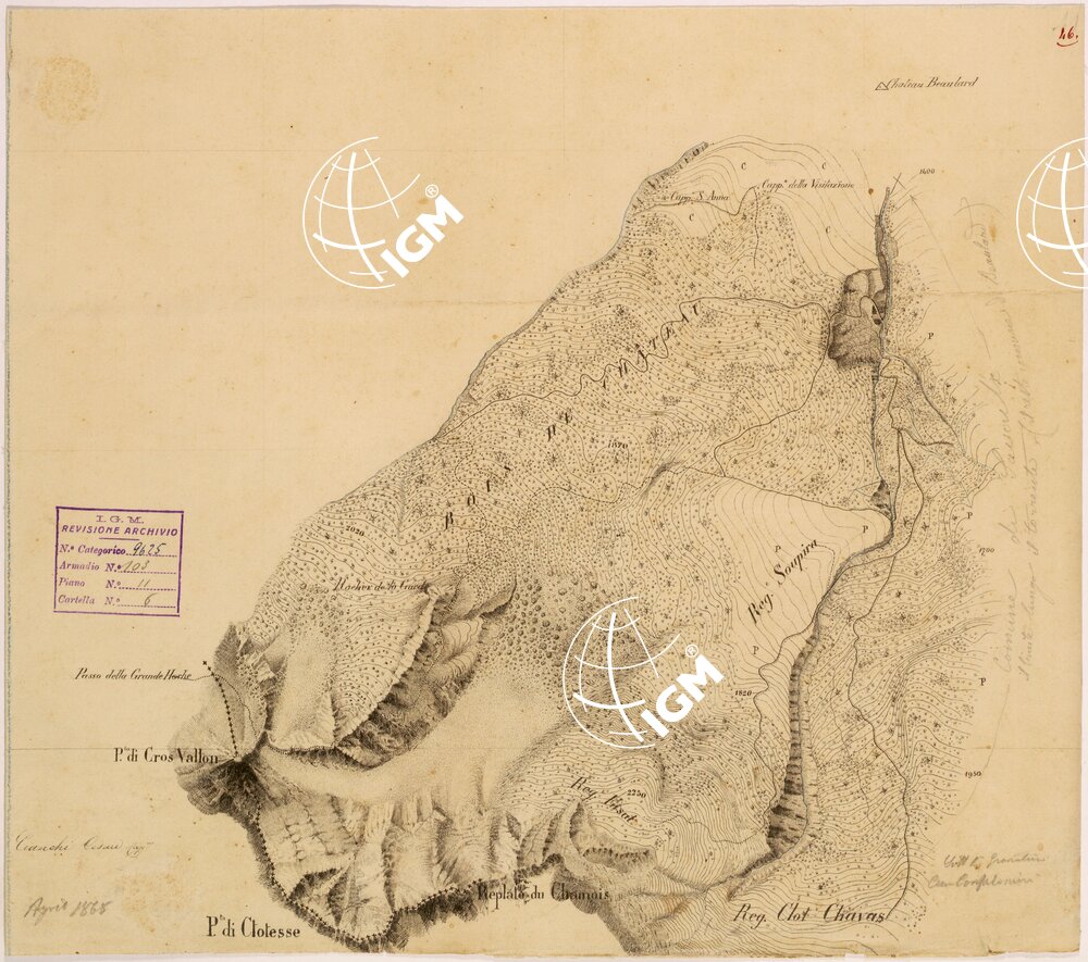 Rilievi eseguiti da Ufficiali della Scuola Superiore di Guerra, disegnati a colori su carta da disegno montata su tela.