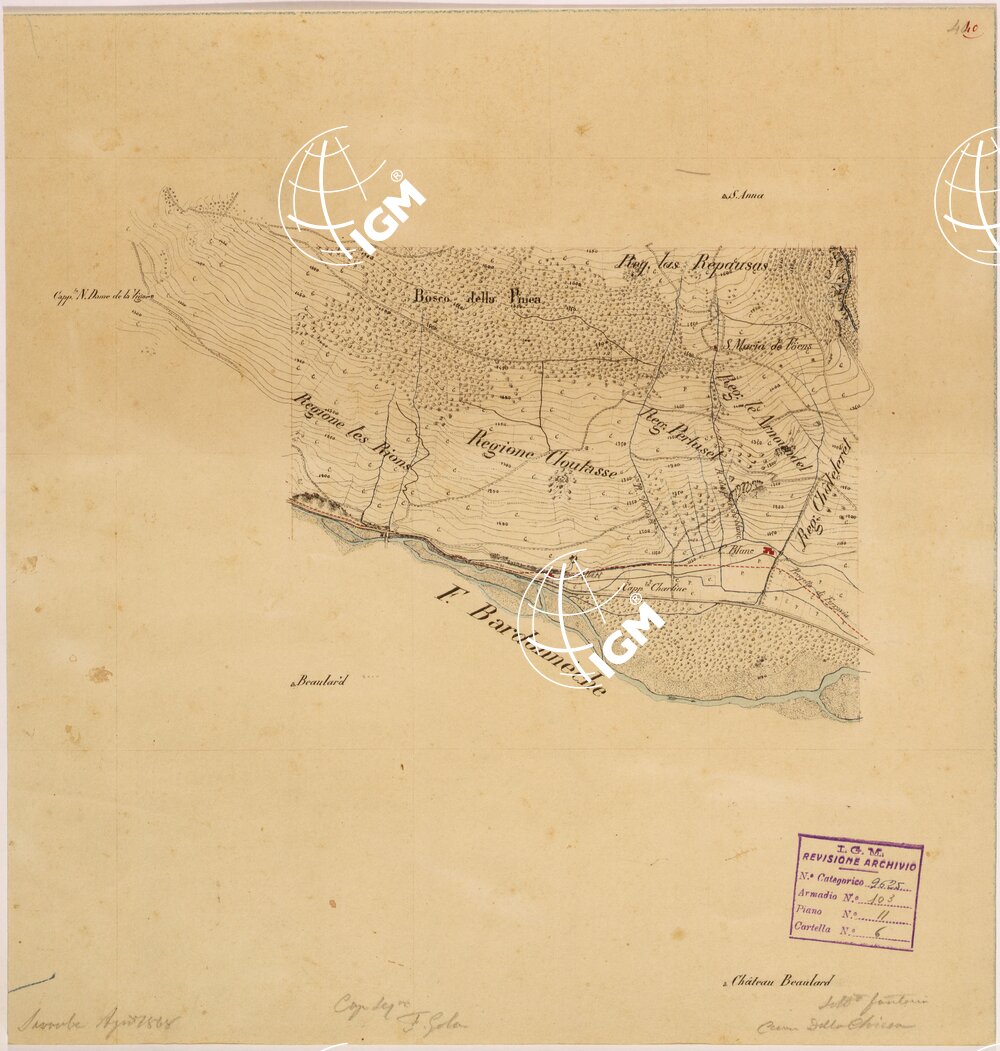 Rilievi eseguiti da Ufficiali della Scuola Superiore di Guerra, disegnati a colori su carta da disegno montata su tela.
