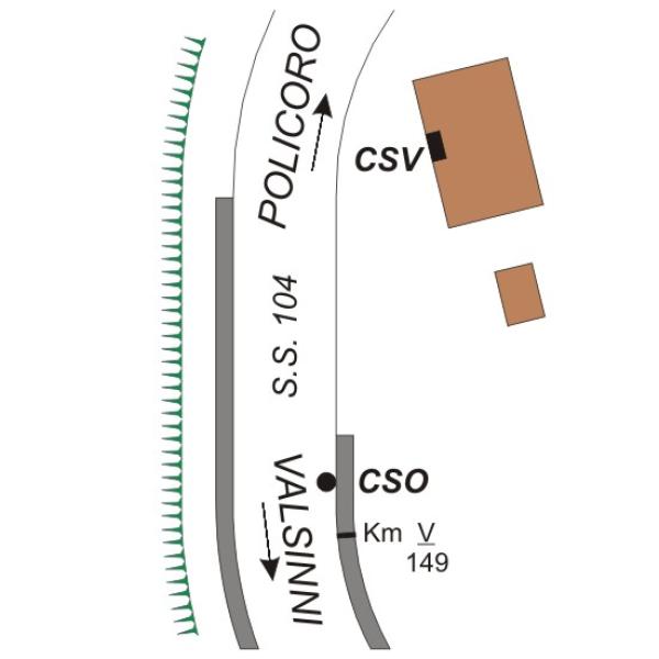 | Contrassegni | [{"simbolo_contrassegno":"B1","materializzazione":"(CSO) – Bullone infisso nel cordolo di contenimento, lato sinitro direzione Valsinni, in corrispondenza del km 149+500"},{"simbolo_contrassegno":"V7","materializzazione":"(CSV) – Cilindro metallico incassato (n. 45), infissa sulla facciata della casa Cantoniera a sinistra della porta d'ingresso."}] |