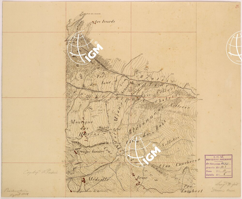 Rilievi eseguiti da Ufficiali della Scuola Superiore di Guerra, disegnati a colori su carta da disegno montata su tela.