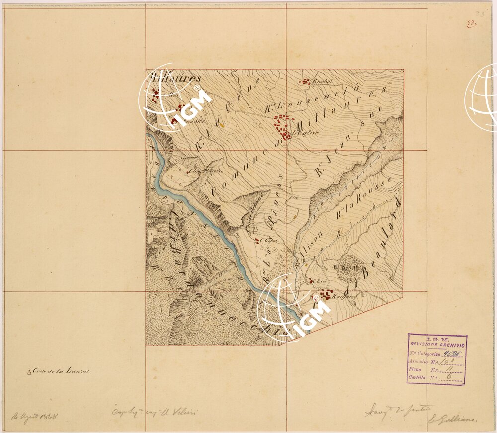 Rilievi eseguiti da Ufficiali della Scuola Superiore di Guerra, disegnati a colori su carta da disegno montata su tela.