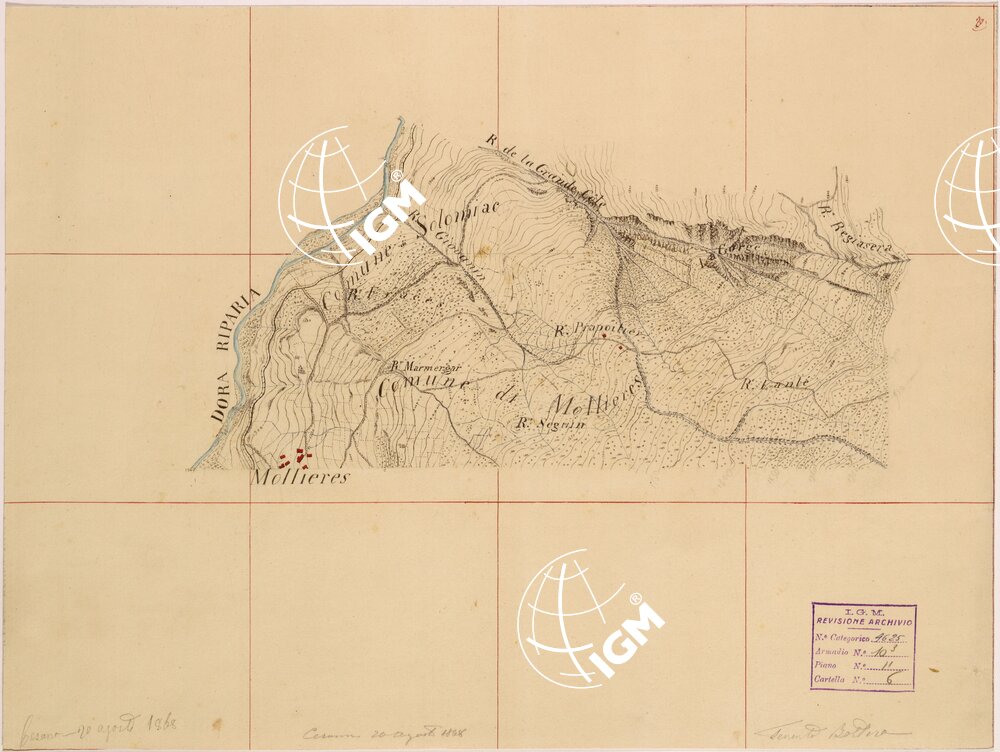 Rilievi eseguiti da Ufficiali della Scuola Superiore di Guerra, disegnati a colori su carta da disegno montata su tela.