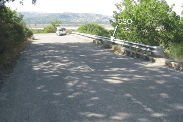 | Contrassegni | [{"simbolo_contrassegno":"B1","materializzazione":"(CSO) – Bullone infisso esternamente al cordolo di ancoraggio del guard-rail, a 5 metri dall'inizio del guard-rail"},{"simbolo_contrassegno":"B4","materializzazione":"(CSO') – Centrino universale \"ARPAB 212610\" infisso sul cordolo a margine strada, in prossimit\u00e0 dell'estremo direzione Valsinni."}] |