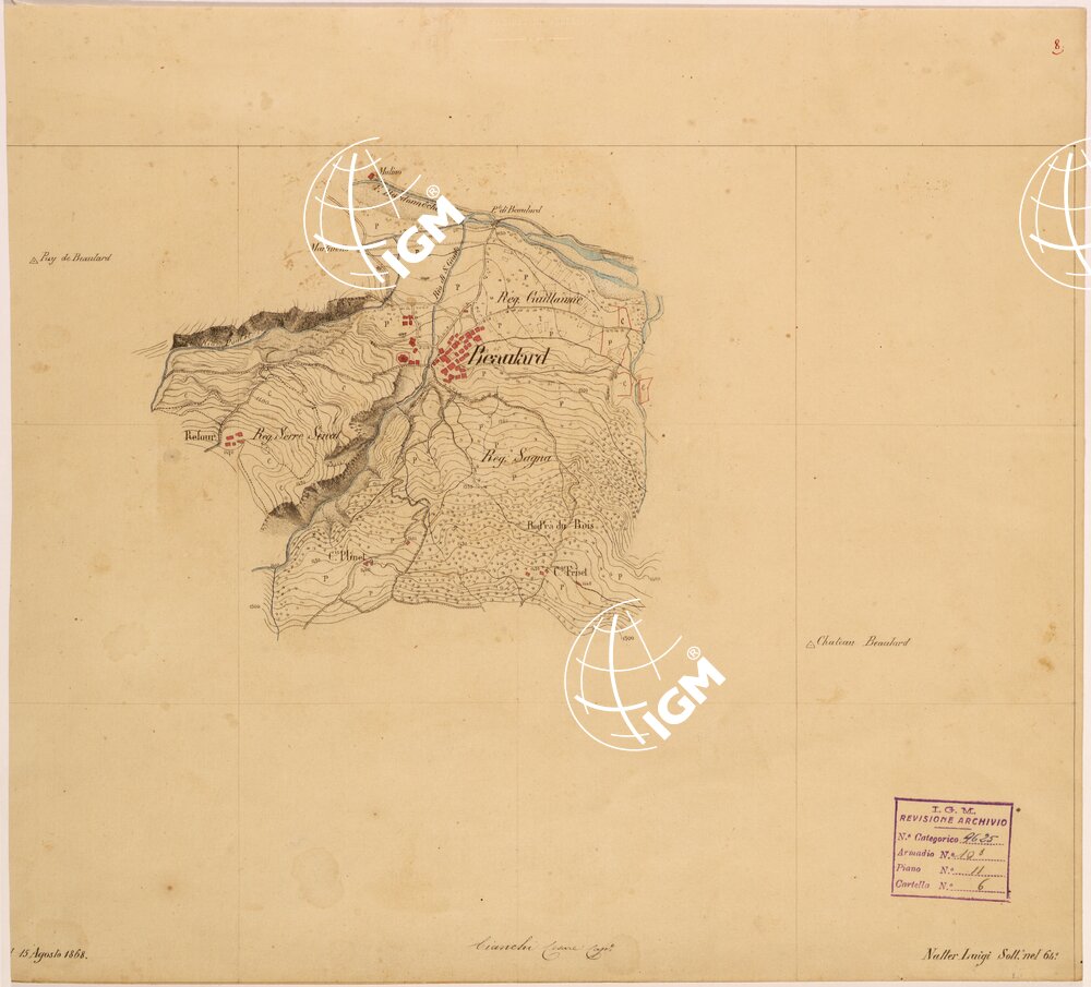 Rilievi eseguiti da Ufficiali della Scuola Superiore di Guerra, disegnati a colori su carta da disegno montata su tela.