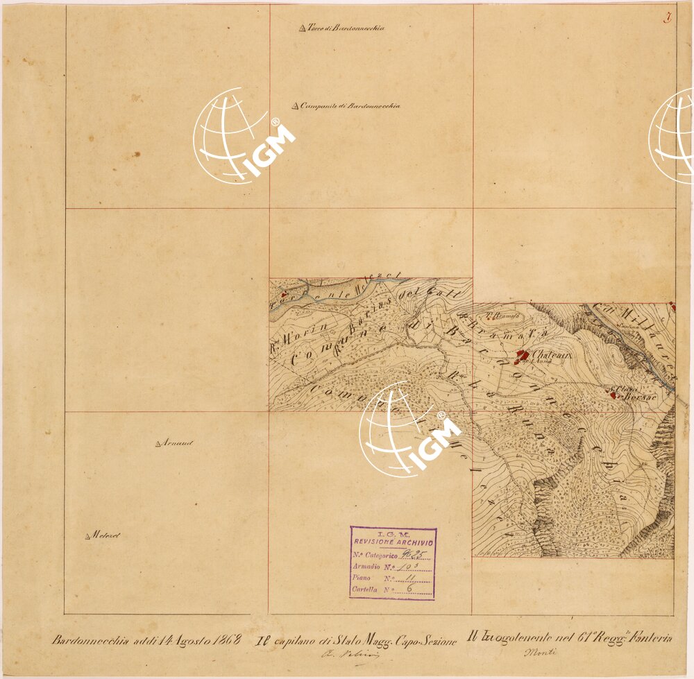 Rilievi eseguiti da Ufficiali della Scuola Superiore di Guerra, disegnati a colori su carta da disegno montata su tela.