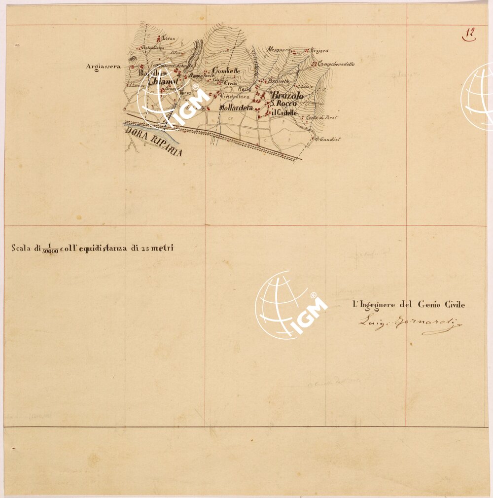 Rilievi eseguiti da Ingegneri del Genio Civile, disegnati a colori su carta da disegno montata su tela.