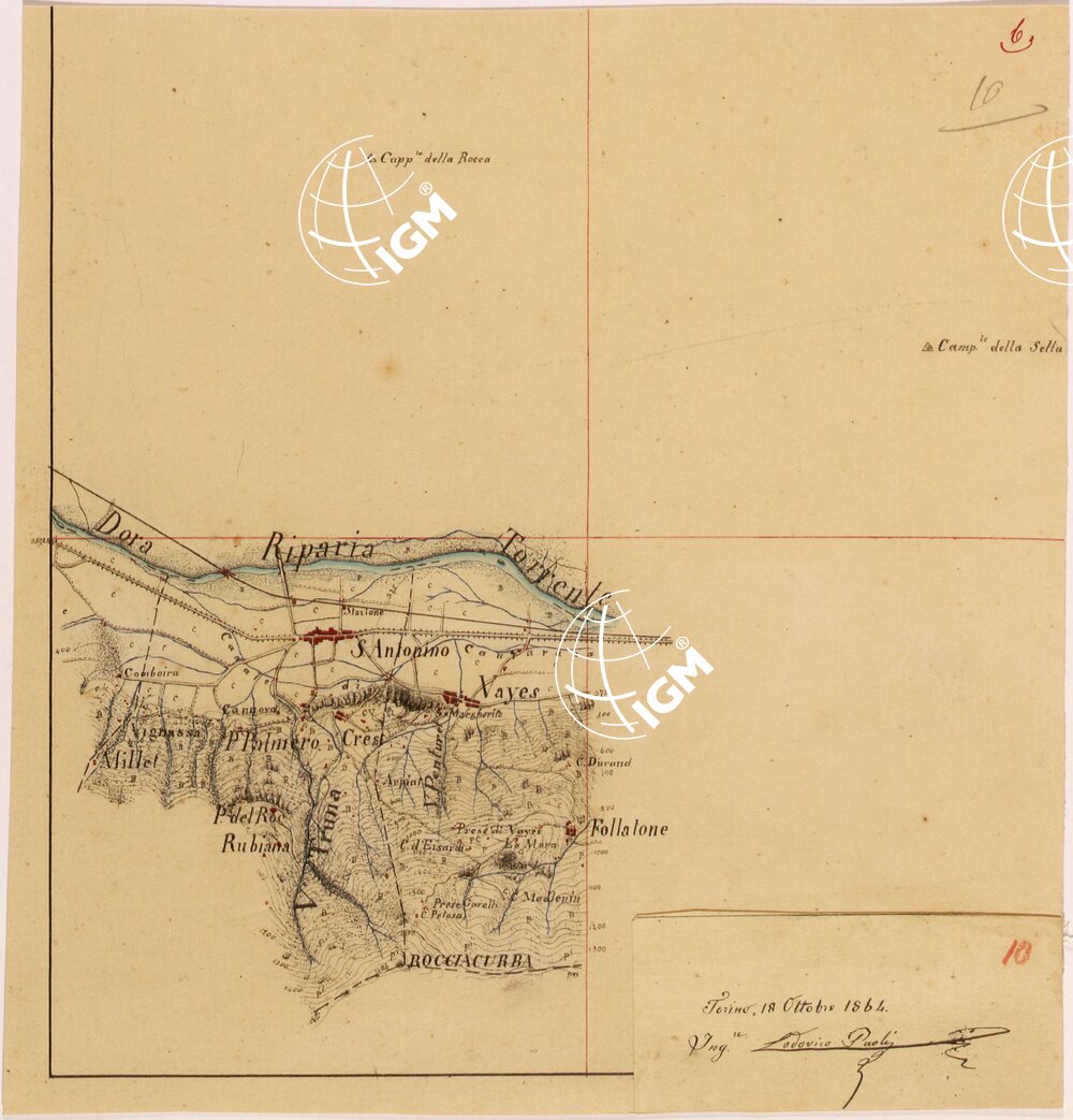 Rilievi eseguiti da Ingegneri del Genio Civile, disegnati a colori su carta da disegno montata su tela.