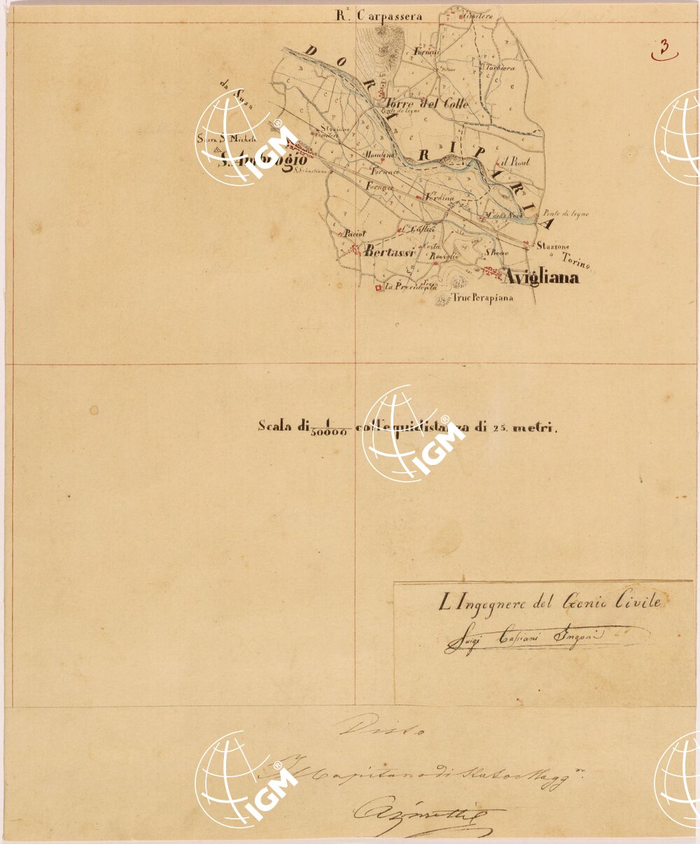 Rilievi eseguiti da Ingegneri del Genio Civile, disegnati a colori su carta da disegno montata su tela.
