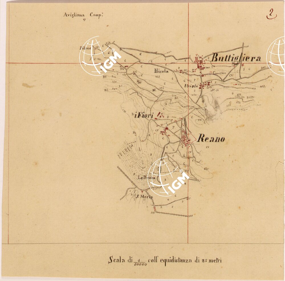 Rilievi eseguiti da Ingegneri del Genio Civile, disegnati a colori su carta da disegno montata su tela.