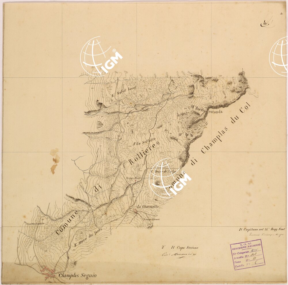 Rilievi eseguiti da Ufficiali della Scuola Superiore di Guerra, disegnati a colori su carta da disegno montata su tela.