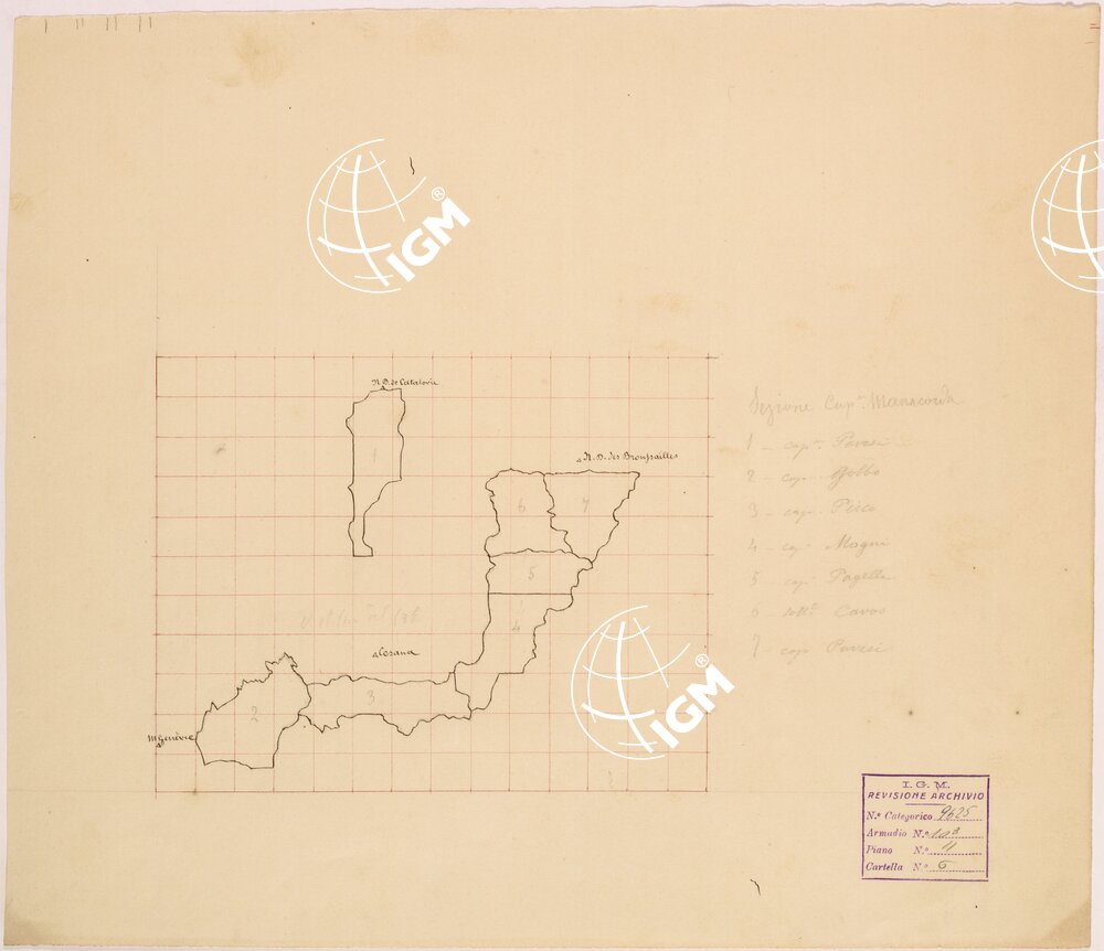 Rilievi eseguiti da Ufficiali della Scuola Superiore di Guerra, disegnati a colori su carta da disegno montata su tela.