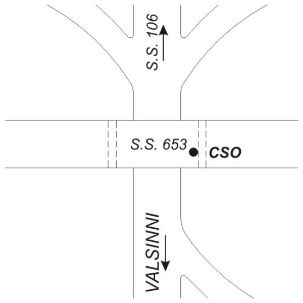 | Contrassegni | [{"simbolo_contrassegno":"B1","materializzazione":"(CSO) – Bullone infisso nel pilone della superstrada SS 653, lato sinistro direzione Valsinni"}] |