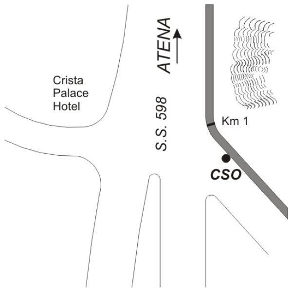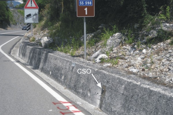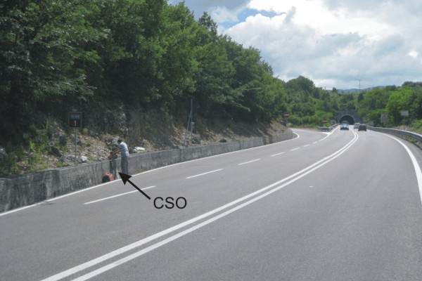 [{"simbolo_contrassegno":"B1","materializzazione":"(CSO) – Bullone infisso nel muro di contenimento all'altezza del km 1+000, lato destro direzione Atena"}]