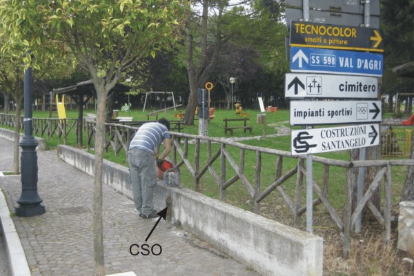 | Contrassegni | [{"simbolo_contrassegno":"B1","materializzazione":"(CSO) – Bullone infisso nel cordolo in calcestruzzo che delimita i giardini pubblici, lato sinistro direzione Atena"}] |