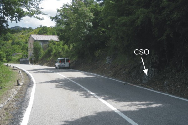 | Contrassegni | [{"simbolo_contrassegno":"B1","materializzazione":"(CSO) – Bullone infisso in una roccia sul bordo sinistro della carreggiata direzione Atena"}] |