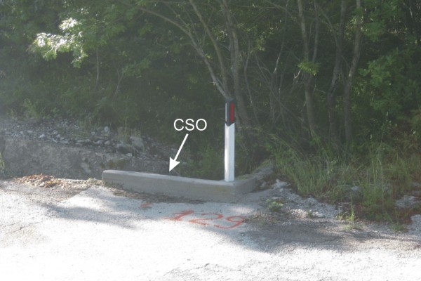 | Contrassegni | [{"simbolo_contrassegno":"B1","materializzazione":"(CSO) – Bullone infisso nel lato interno del sifone posto al bordo della carreggiata al Km 6+700"}] |