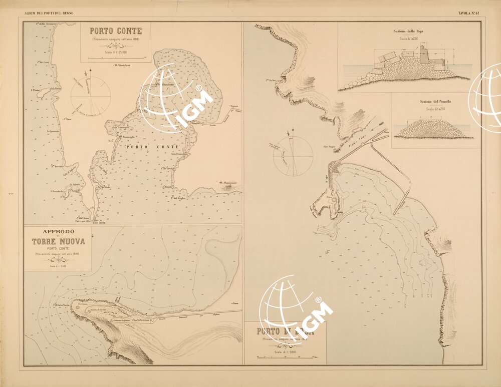 ALBUM DEI PORTI MARITTIMI DEL REGNO D’ITALIA – TAVOLA 47 – PORTI DI BOSA – PORTO CONTE – APPRODO DI TORRE NUOVA