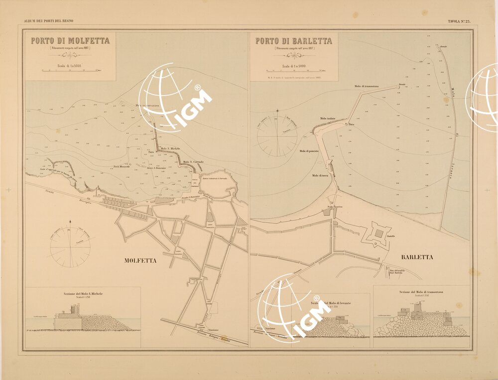 ALBUM DEI PORTI MARITTIMI DEL REGNO D’ITALIA – TAVOLA 23 – PORTI DI MOLFETTA – BARLETTA