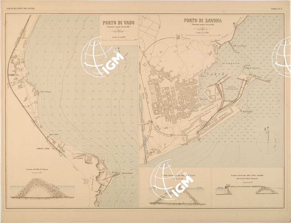 ALBUM DEI PORTI MARITTIMI DEL REGNO D’ITALIA – TAVOLA 03 – PORTI DI VADO – SAVONA