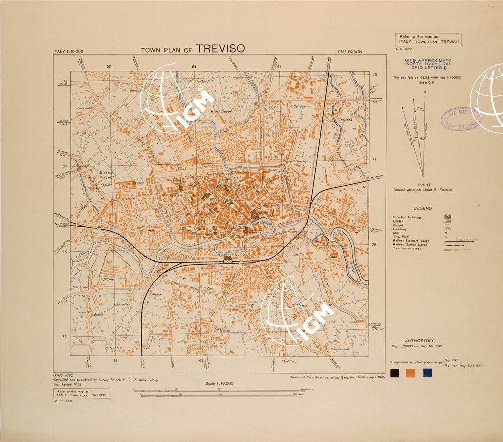 Riproduzione IGM della carta del Survey Branch H. Q. 15 Army Group.