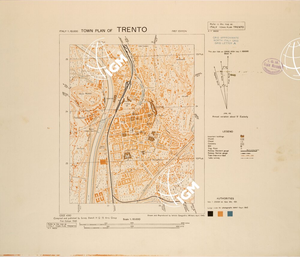 Riproduzione IGM della carta del Survey Branch H. Q. 15 Army Group.